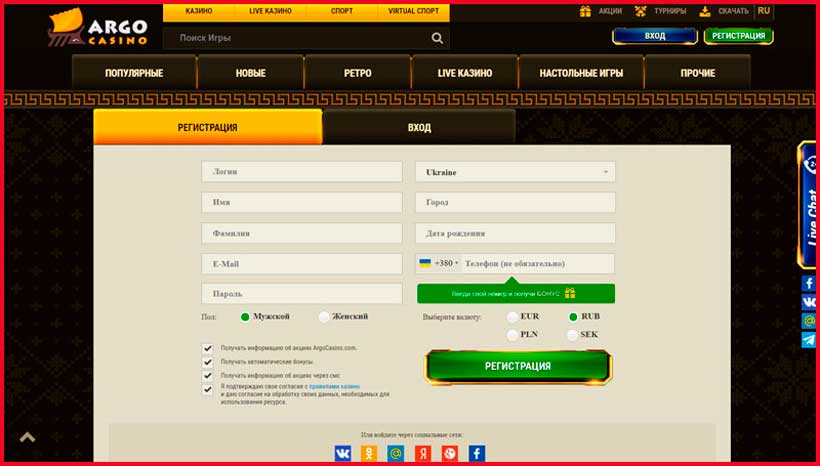 Регистрируйтесь в казино Арго уже сейчас и воспользуйтесь уникальной возможностью выиграть до 50 EUR не пополняя свой счет!