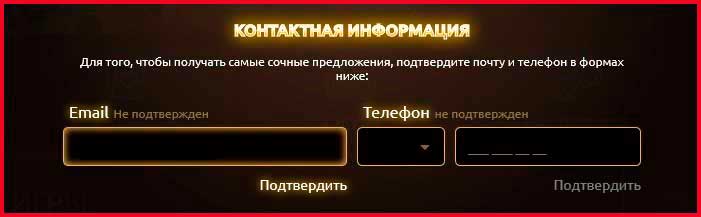 После регистрации пользователю необходимо пройти верификацию. Этот этап считается важным условием для получения бездепозитного бонуса. Верификацию требуется пройти в течение 3 суток после создания аккаунта - именно столько действует спецпредложение от казино. Игроку необходимо подтвердить контактные данные, указанные в собственном профиле. К таким сведениям относятся номер телефона и электронный адрес. После нажатия по кнопке «Подтвердить» на указанные контакты геймеру придет сообщение с дальнейшими инструкциями.